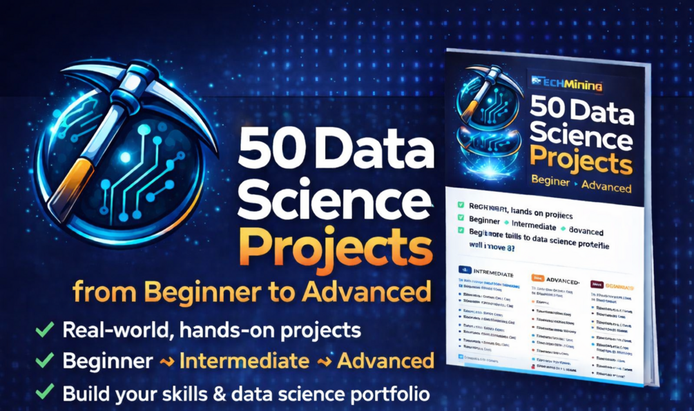 You’ll get a curated list of 50 data science project ideas, organized from beginner to advanced level, designed to help you learn by building and strengthen your portfolio.